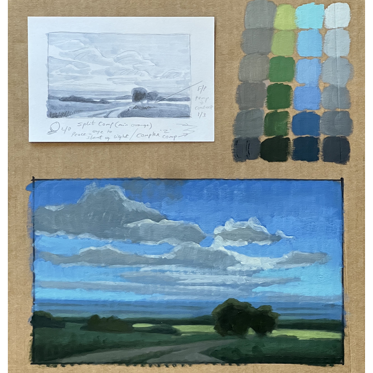 Each artist was asked to paint three major paintings and to provide evidence of their process, which could include photographs, thumbnail sketches, drawings, plein air studies and other techniques. In the exhibition, these smaller works showing their progression of thought and inspiration will be paired with the completed final works.