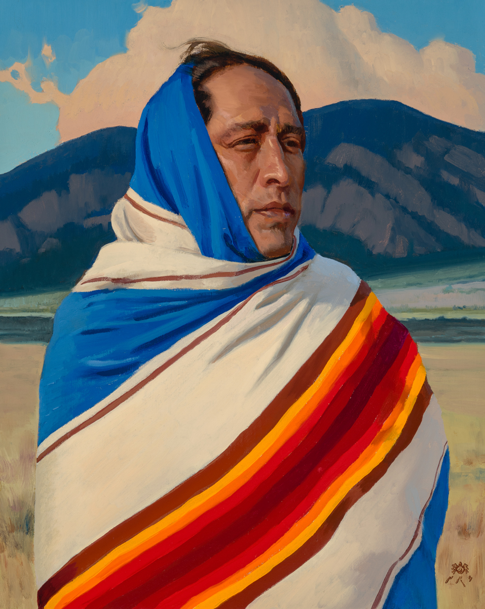 Western Art on View > Featuring 16 new works, “Between Earth & Sky” is Tony Pro’s deeply personal homage to the lands and people of the Navajo (Diné) and Taos Pueblo nations. From sweeping oil paintings to intimate works on paper, the collection captures the quiet reverence of desert landscapes and the dignified strength of Indigenous identity.